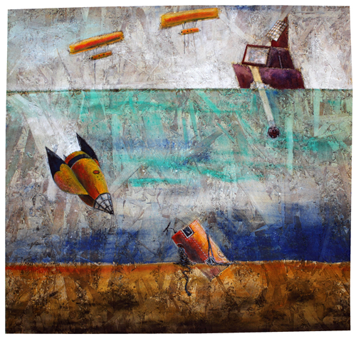 ![]() Dirigible Race Across a Mercury Sea 20" x 14" / acrylic on wood / 2011 |