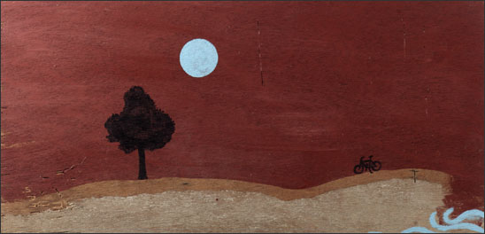![]() Bike At Shore 21.5" x 10" / acrylic and ink on wood / 2001 original art: Sold |