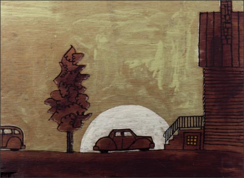 | About - Shows | ![]() The Township Building 12" x 8.5" / acrylic and ink on wood / 2001 |