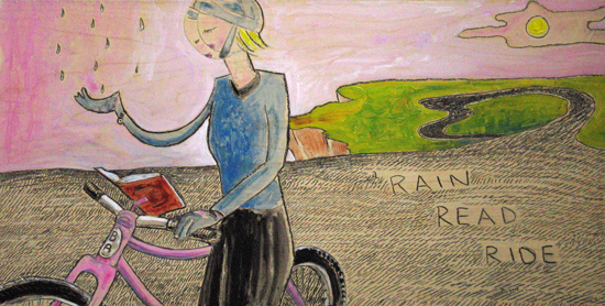 ![]() Rain Read Ride 29.5" x 18" / acrylic and ink on wood / 2005 original art: Sold |