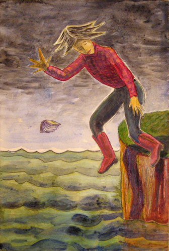 ![]() Literary Leap 7" x 11" / acrylic and pencil on wood / 2006 |