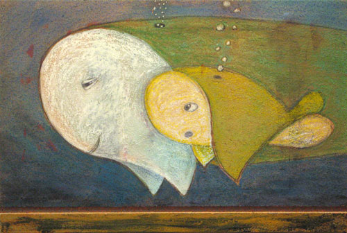 ![]() Two Whales 20.5" x 12" / acrylic and pastel on wood / 2006 original art: Sold |