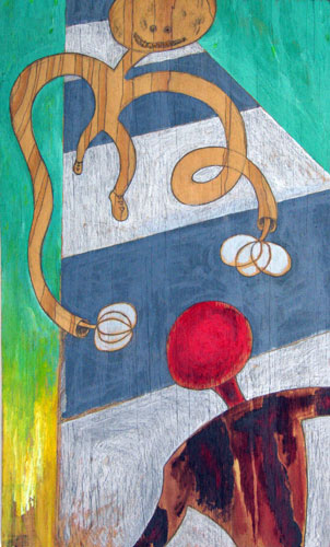 ![]() Dueling Personalities 8" x 14" / acrylic and pencil on wood / 2001 |