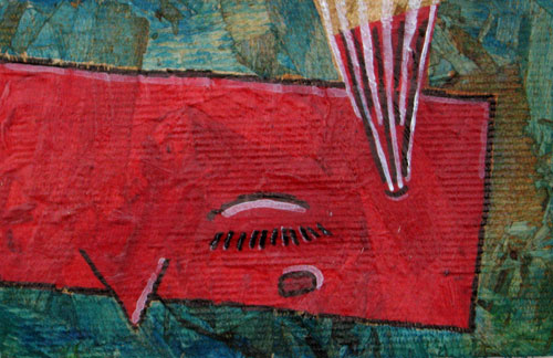 ![]() Red, White and Blow 8" x 5" / acrylic, tissue and ink on wood / 2006 |