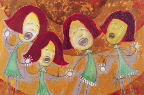 ![]() The Le Mon Sisters 40" x 24" / acrylic and pencil on canvas / 2001 Original art: Sold |