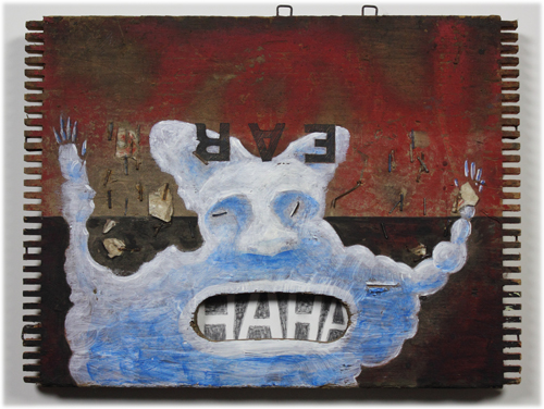 ![]() Ear 13" x 10" / acrylic, pencil, paper and metal on wood /2007 |