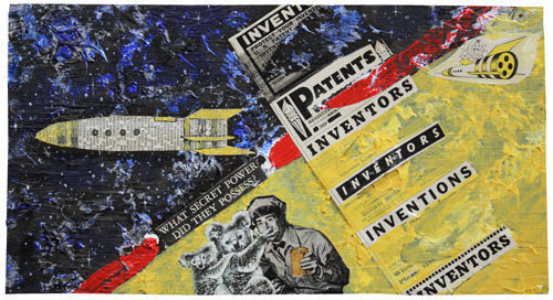 ![]() What Secret Did They Possess? 12" x 6" / acrylic, paper and ink on wood / 2010 |